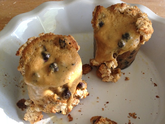 Muffin explosion. Halfway through baking they looked beautiful but at some point in the second half, the uncooked batter just couldn’t remain contained and burst out over the top. I immediately saw my error. I had a smaller mold than in the book but used the same amount of batter. Here are the correct measurements: