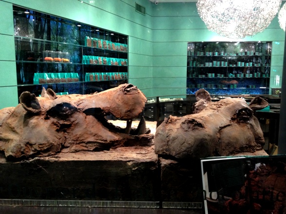 Inside the shop, all the walls are “painted” with a textured chocolate-colored material and I wanted to lick them, Willy Wonka style. I really like the archaeological feel of the shop.
